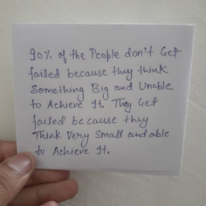 Misal ada 4 orang (skala 0-100), “A” menargetkan 100, “B” menargetkan 90, “C” menargetkan 80 dan “D” menargetkan 70. jika semua semua kemungkinan peluang berhasil nya 10%, maka “A” mendapatkan 90, “B” mendapatkan 81, “C” mendapatkan 72, dan “D” mendapatkan 63. Artinya semakin besar target yang ditetapkan, maka akan semakin dekat dengan keberhasilan 100%, begitu pula sebaliknya semakin kecil target yang ditetapkan semakin jauh dari keberhasilan 100%. Maka kunci untuk mendekati target 100% adalah dengan berpikir besar, yakin dengan terget, yakin dengan kemampuan dan yakin dengan yang dilakukan. sumber gambar@facebook 0